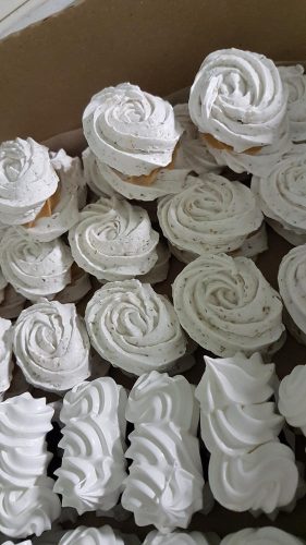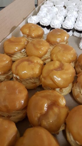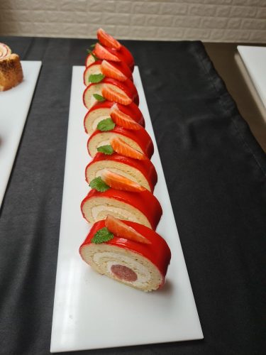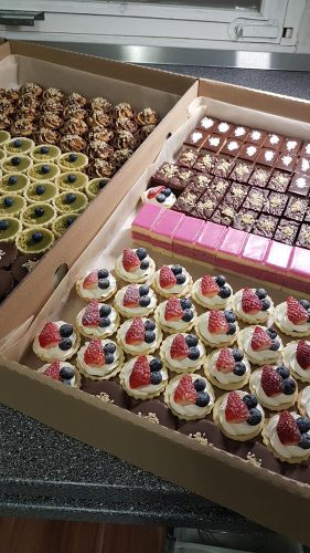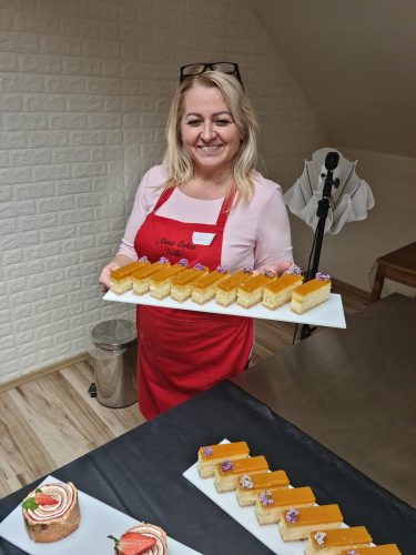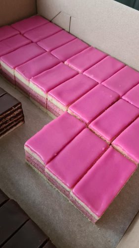 Ponúkame pestrý sortiment zákuskov, torty, tortové výrezy, domáce ťahené štrúdle, pagáče, praclíky.